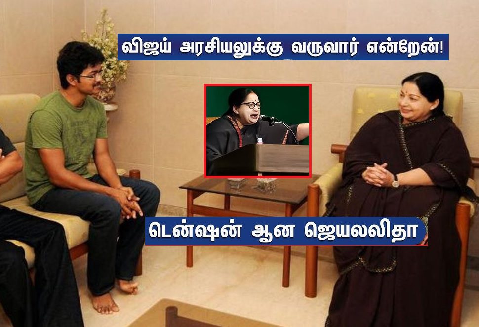 முன்னணி நடிகரான விஜயின் தலைவா படத்தை தமிழ் நாட்டில் வெளியிட விடாமல் நேரடியாக தடை செய்தது ஜெயலலிதா அரசு. அந்தப் படத்தில் வரும் சில விடையங்களை நீக்கவேண்டும் என்னு கோரி அவை அனைத்தையும் நீக்கிய பின்னரே தலைவா படம் ரிலீஸ் ஆனது பலர் அறிந்த விடையம். இந்த விடையமாக பேச, ஜெயலலிதாவின் கோடை நாடு எஸ்டேட்டுக்கு விஜய் சென்றும். வீட்டுக்கு உள்ளே இருந்த ஜெயலலிதா , விஜயை பார்க்க மறுத்துவிட்டார்.