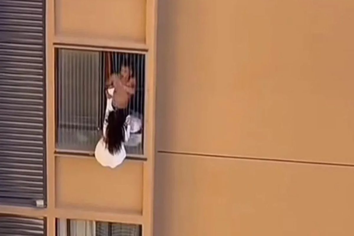 @thesun Mistress nearly falls to her death while hiding from her lover’s wife on a tenth floor window. Click above to read the full story. #WorldNews #Mistress #affair #danger #China