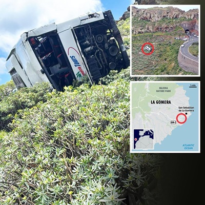 ஸ்பெயினின் கேனரி தீவுகளில் ஒன்றான லான்சரோட்டில் (Lanzarote), பிரிட்டிஷ் சுற்றுலாப் பயணிகள் சென்ற சுற்றுலாப் பேருந்து எதிர்பாராத விதமாகப் பள்ளத்தாக்கில் விழுந்து விபத்துக்குள்ளானது. இந்தப் பேருந்தில் சுமார் 40-க்கும் மேற்பட்ட பிரிட்டன் சுற்றுலாப் பயணிகள் இருந்ததாகத் தெரிகிறது. மலைப் பாதையில் சென்று கொண்டிருந்தபோது ஓட்டுநரின் கட்டுப்பாட்டை இழந்த பேருந்து, சாலையோரம் இருந்த தடுப்புகளை உடைத்துக்கொண்டு ஆழமான பள்ளத்தில் தலைகீழாகக் கவிழ்ந்தது. இந்த விபத்தில் பிரிட்டிஷ் சுற்றுலாப் பயணி ஒருவர் சம்பவ இடத்திலேயே உயிரிழந்தார்.