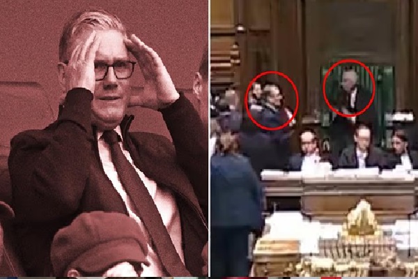 [British Prime Minister Keir Starmer looking stressed during a heated debate in the House of Commons]