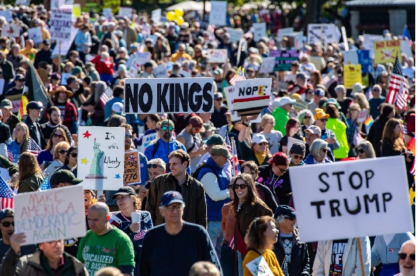 அமெரிக்க அதிபர் டொனால்ட் ட்ரம்ப்பின் ‘சர்வாதிகாரப் போக்கு’ மற்றும் ஈரான் மீதான போரைக் கண்டித்து, ‘நோ கிங்ஸ்’ (No Kings) என்ற பெயரில் நேற்று (மார்ச் 28, 2026) உலகம் முழுவதும் மாபெரும் போராட்டங்கள் நடைபெற்றன. அமெரிக்காவின் 50 மாநிலங்கள் மற்றும் ஐரோப்பாவின் முக்கிய நகரங்கள் உட்பட சுமார் 3,300 இடங்களில் இந்தத் தர்ணா போராட்டங்கள் முன்னெடுக்கப்பட்டன. இதில் சுமார் 90 லட்சத்திற்கும் அதிகமான மக்கள் கலந்துகொண்டதாக ஏற்பாட்டாளர்கள் தெரிவித்துள்ளனர். அமெரிக்க வரலாற்றிலேயே ஒரு அதிபருக்கு எதிராக நடைபெற்ற மிகப்பெரிய போராட்டமாக இது பார்க்கப்படுகிறது.