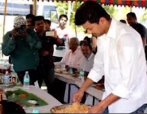 2002ம் ஆண்டில் தான் முதலில் நடிகர் விஜய் அவர்களுக்கும், முதல்வர் ஜெயலலிதாவுக்கும் இடையே போர் மூண்டது. 2002ம் ஆண்டில் சென்னை மத்திய சிறைச்சாலைக் கைதிகள், தமக்கு கிருஸ்மஸ் திகதியில் மட்டன் பிரியாணி தேவை என்று கோரிக்கை வைக்க. சமூக சேவைகள் செய்து வந்த தேவலயத்தினர் தம்மால் 2,000 பேருக்கு மட்டன் பிரியாணி கொடுக்க பணம் இல்லை என்று கையை விரித்து விட்டார்கள். இந்தச் செய்தி விஜய் காதுக்கு எட்ட. நடிகர் விஜய் தானே தனது சொந்தப் பணத்தில் 2,000 கைதிகளுக்கு மட்டன் பிரியாணி கொடுத்தார். அதுமட்டும் அல்ல அவர் தானே அதனையும் பரிபாறி இருந்தார்.