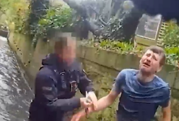 மாடியில் இருந்து கீழே குதித்த அந்த இளைஞர், அங்கிருந்த ஒரு ஆற்றில் இறங்கித் தப்பிக்க முயன்றுள்ளார். ஆனால், விடாக்கண்டனாகப் பின்தொடர்ந்த பொலிஸ் நாய், தண்ணீருக்குள்ளும் அவரை விடாமல் துரத்திச் சென்று கவ்விப் பிடித்தது. நாய் ஆடையைப் பிடித்து இழுத்ததில், அவரது கால்சட்டை முழுவதுமாக இறங்கி, இடுப்புக்குக் கீழே நிர்வாணமான நிலையிலேயே அவர் போலீசாரிடம் பிடிபட்டார்.