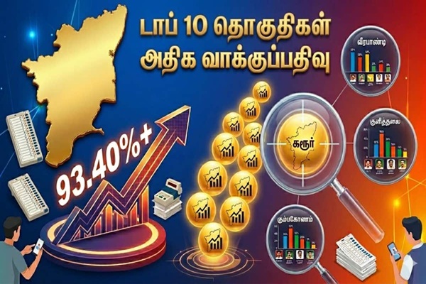 வாக்குப்பதிவில் மாநிலத்தின் டாப் 10 இடங்களைப் பிடித்துள்ள தொகுதிகளின் தோராயமான பட்டியல் இதோ: