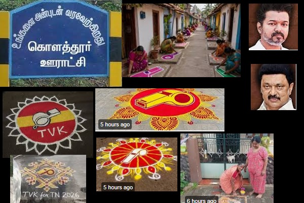 இன்று காலை சென்னை கொளத்தூர் தொகுதி திமுக நிர்வாகிகள் பலரும், ஏதோ பேயைப் பார்த்தது போல செம ஷாக்கில் உறைந்து போயிருக்காங்க. என்னடான்னு பார்த்தா, முதல்வர் ஸ்டாலின் போட்டியிடுற கொளத்தூர் தொகுதியில இருக்குற பல வீட்டு வாசல்ல, விடிய காலையிலேயே ‘விசில்’ (Whistle) சின்னம் கோலமா ஜொலிச்சுக்கிட்டு இருக்கு. காலம் காலமா திமுகவோட அசைக்க முடியாத கோட்டையா இருந்த கொளத்தூர் மக்கள், இப்புடி திடீர்னு த.வெ.க (TVK) பக்கம் சாஞ்சதை பார்த்து ‘உடன்பிறப்புகள்’ எல்லாம் செம டென்ஷன்ல இருக்காங்க. அதுவும் விஜய்க்கு பெண்கள் ஓட்டு தான் ‘மெயின் சோர்ஸ்’ங்கிறதால, கொளத்தூரோட தற்போதைய நிலையை நினைச்சு அறிவாலயம் பக்கம் ஒரே கவலையா இருக்காம்.