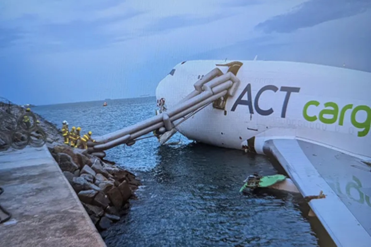 துருக்கியை தளமாகக் கொண்ட ஏ.சி.டி ஏர்லைன்ஸ் (ACT Airlines) நிறுவனத்தின் சார்பில் இயக்கப்படும் இந்த போயிங் 747 ரக சரக்கு விமானம், அதிகாலை 3:50 மணியளவில் தரையிறங்கியபோது, ஓடுபாதையில் இருந்து விலகி, அருகில் உள்ள கடல் சுவரை உடைத்துக்கொண்டு கடலுக்குள் பாய்ந்தது.