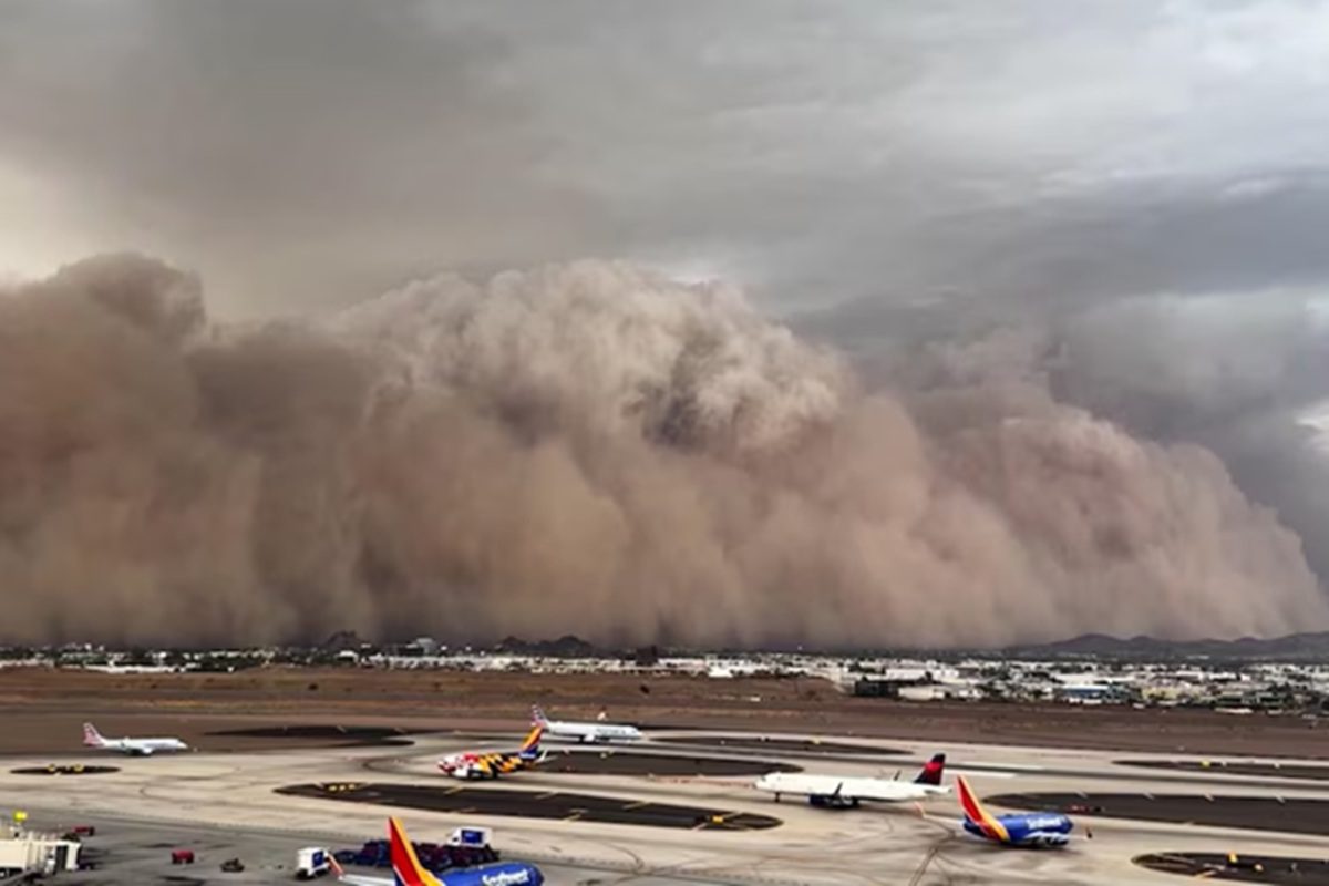 அமெரிக்காவின் அரிசோனா மாகாணத்தில் திடீரென வீசிய பயங்கர தூசிப் புயலால் மக்கள் பீதியடைந்துள்ளனர். கண்ணிமைக்கும் நேரத்தில் வானம் கறுத்து இருண்டது. அணு ஆயுத தாக்குதல் போல் தோன்றிய அந்தப் புயல், நகரத்தையே உலுக்கி, மின் இணைப்புகளை துண்டித்ததுடன், விமானப் போக்குவரத்தையும் முடக்கியது.